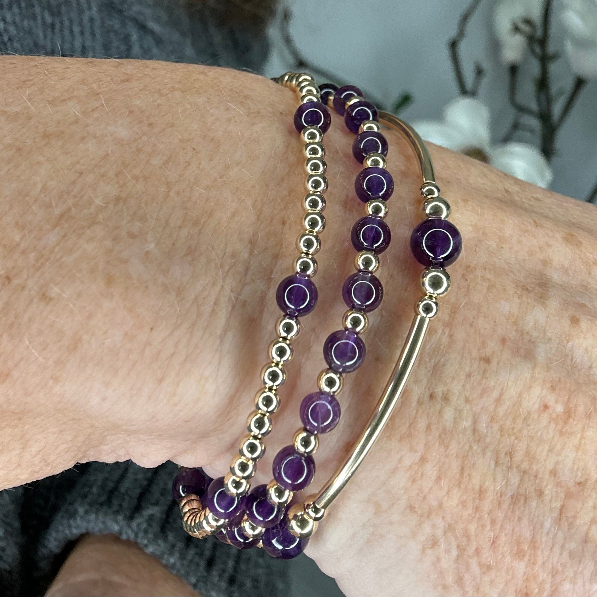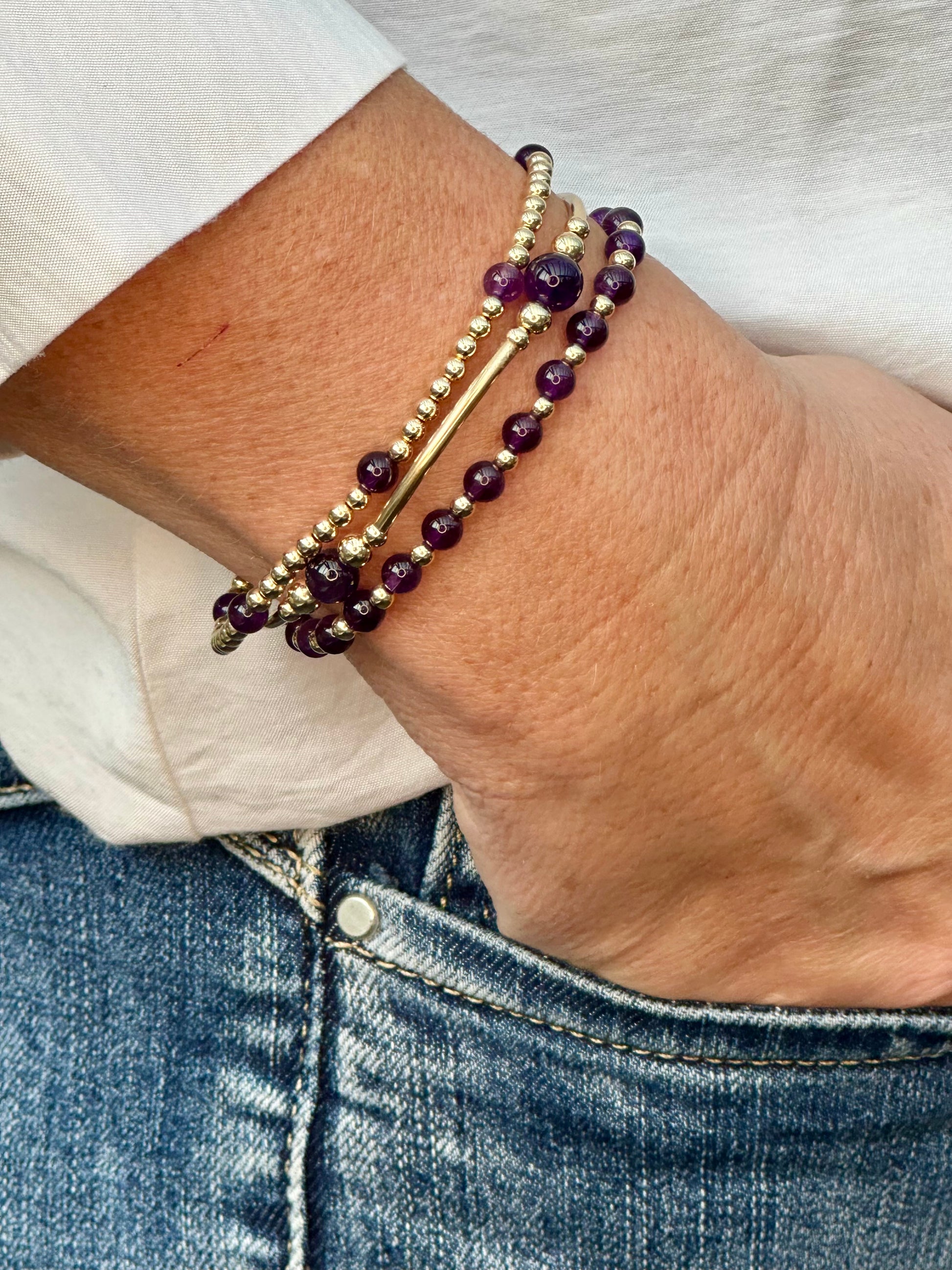 Amethyst 14k Gold Bracelet Stack