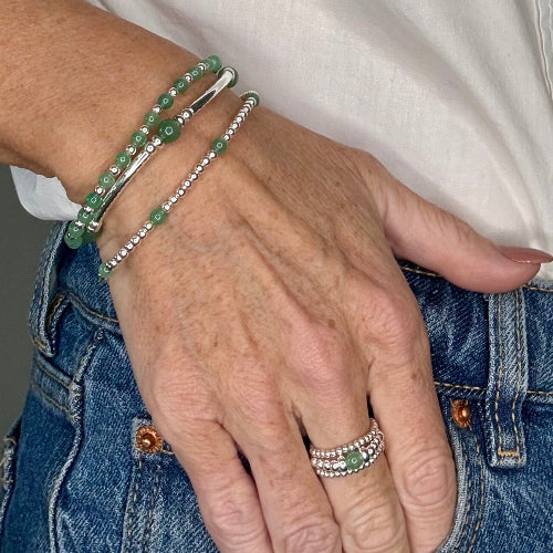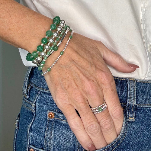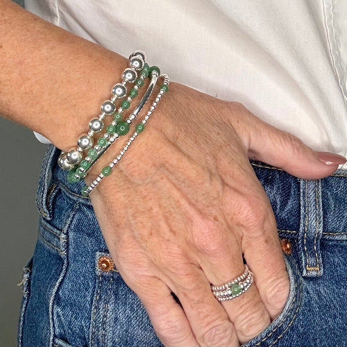 Meet the Aventurine Bracelet Stack, a stunning trio featuring vibrant aventurine gemstones enhanced by classic 925 Sterling Silver accents.