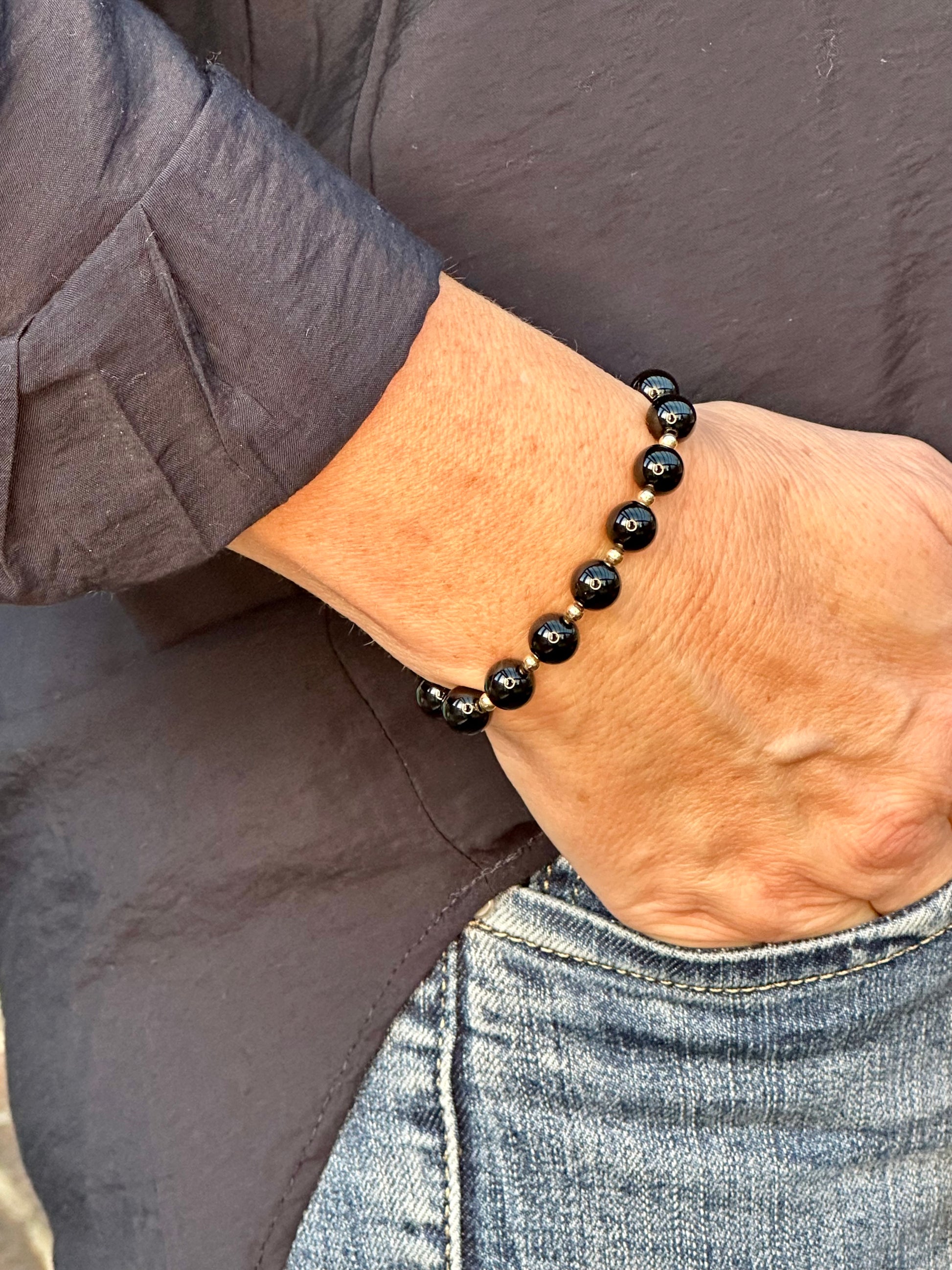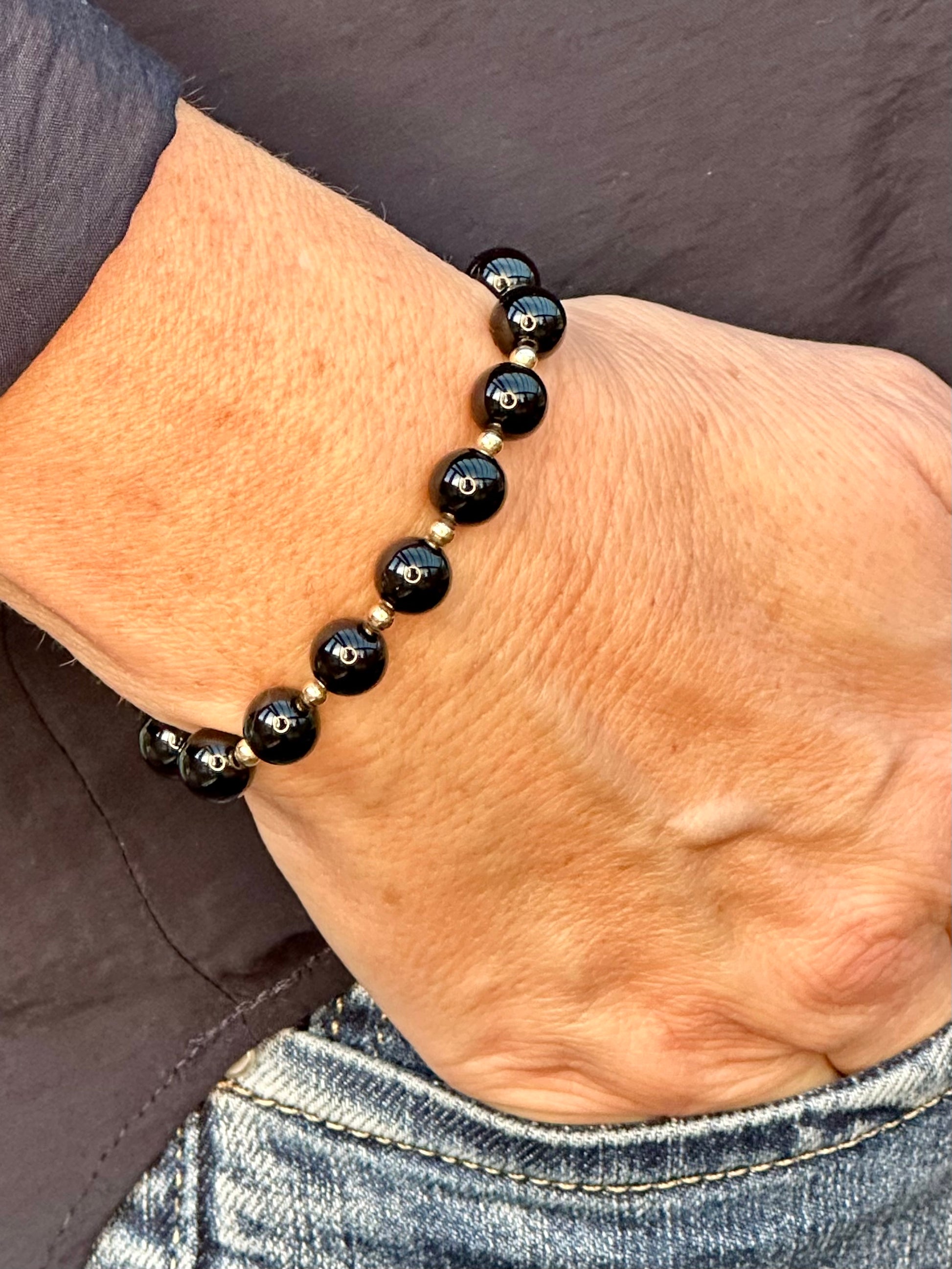 Black onyx is renowned for its protective and grounding properties, believed to enhance focus, resilience, and personal strength. Each bracelet in this collection is crafted to empower you with confidence and balance, while adding a touch of timeless beauty to your ensemble.