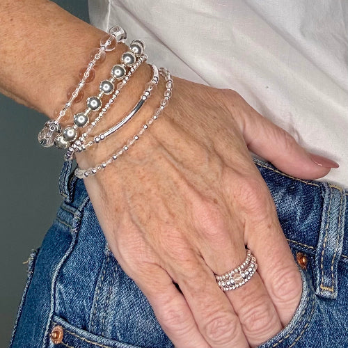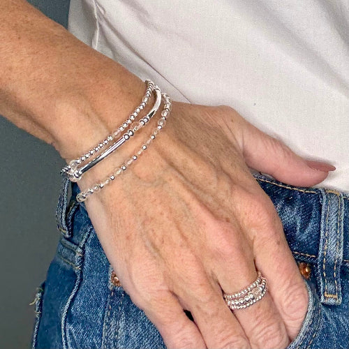 Crystal Quartz 925 Sterling Silver Bracelet Stack