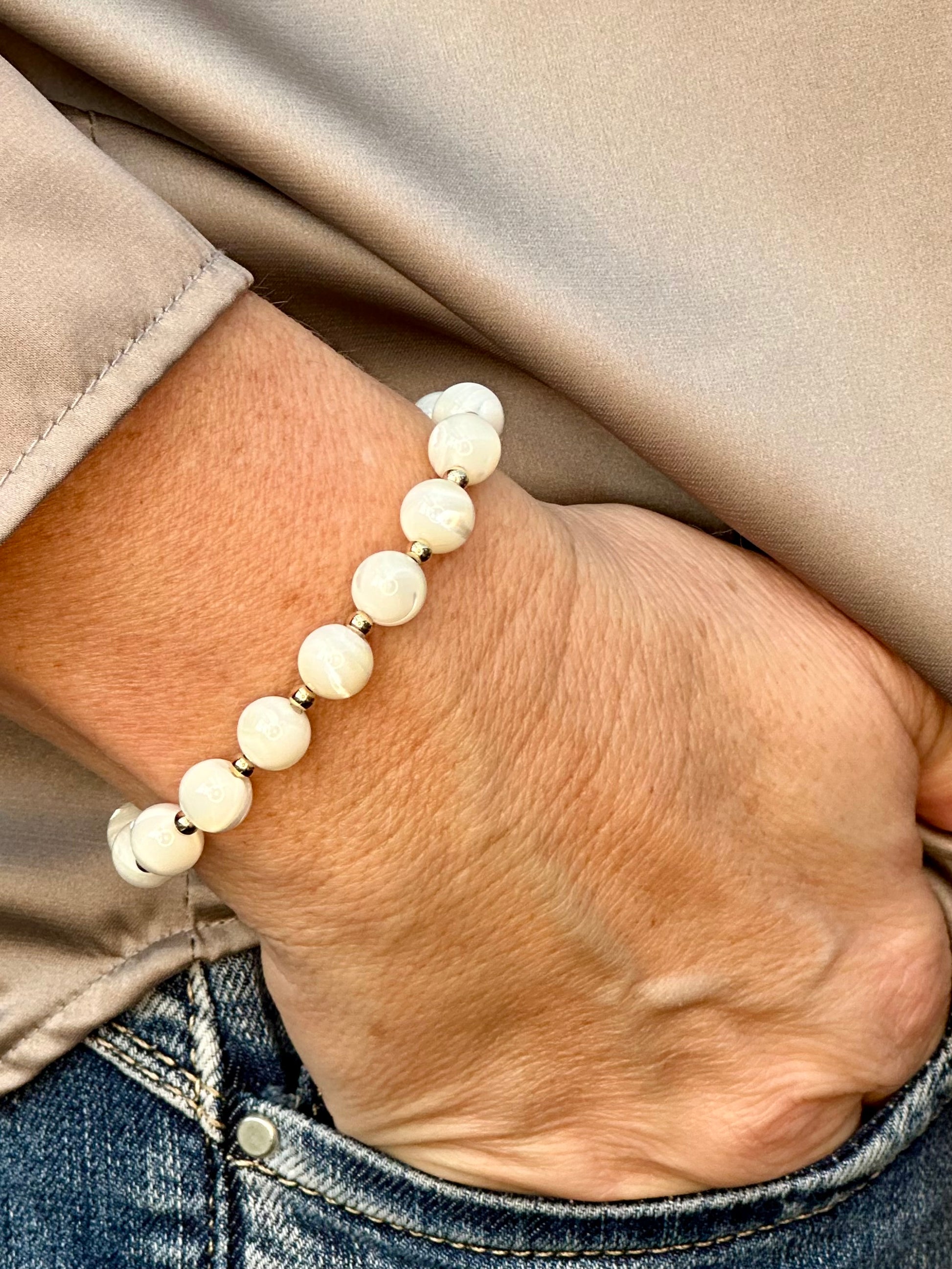 Mother of pearl is cherished for its calming and protective qualities, believed to promote emotional balance, intuition, and inner peace. Each bracelet in this collection is crafted to reflect elegance and tranquility, while adding a touch of luminous beauty to your ensemble.