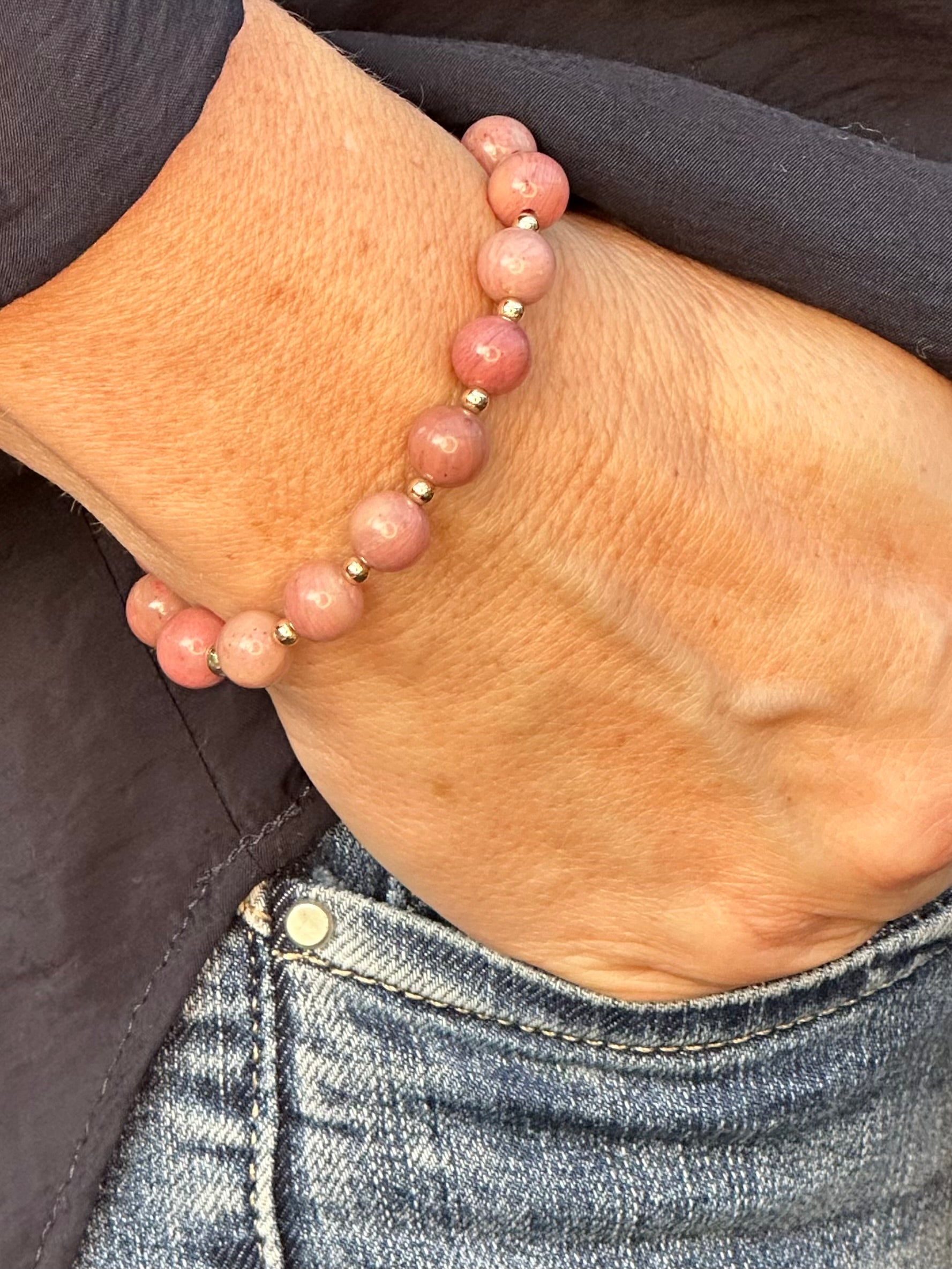 Introducing the Rhodonite Stack Builder, a vibrant and meaningful addition to your collection. This bracelet features soft, pink rhodonite stones, beautifully contrasted by 14k Gold accents, creating a look that’s both delicate and striking.