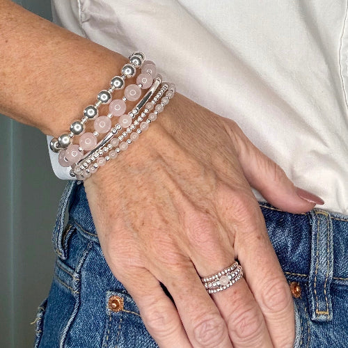 Rose Quartz 925 Sterling Silver Bracelet Stack