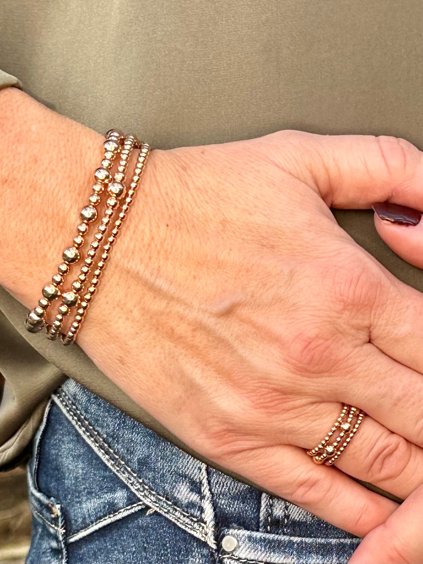 Our versatile stack is also available in 925 Sterling Silver and 14k Gold, offering a variety of options to suit your preferences. With their high-quality craftsmanship, these durable pieces are made to last a lifetime with proper care, making them a timeless addition to your collection.
